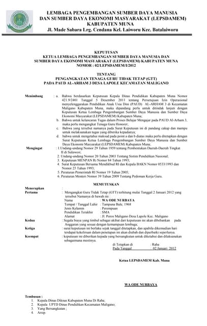 Di artikel ini kami membagikan contoh sk (surat keputusan) pengangkatan kepala di . Contoh sk pengangkatan kepala sekolah sd yayasan dapatkan contoh. Contoh sk pengangkatan kepala sekolah paud. The collection that consisting of chosen picture and the best amongst others. Contoh sk pengangkatan kepala sekolah madrasah oleh yayasan ini.